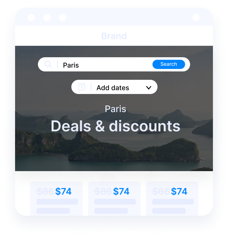 2. After redirecting to the WayAway.io website via your affiliate link, start a search for the destination or route you need. Find a desired flight and click on the arrow button.